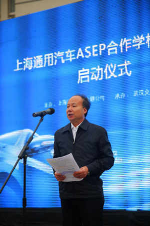 上海通用汽车有限公司网络发展与管理部总监姚芾讲话,他希望校企双方将今天的启动仪式作为一个全新的开始,继续深化合作,将合作项目打造成国内最具影响力和标杆作用的校企合作项目。
