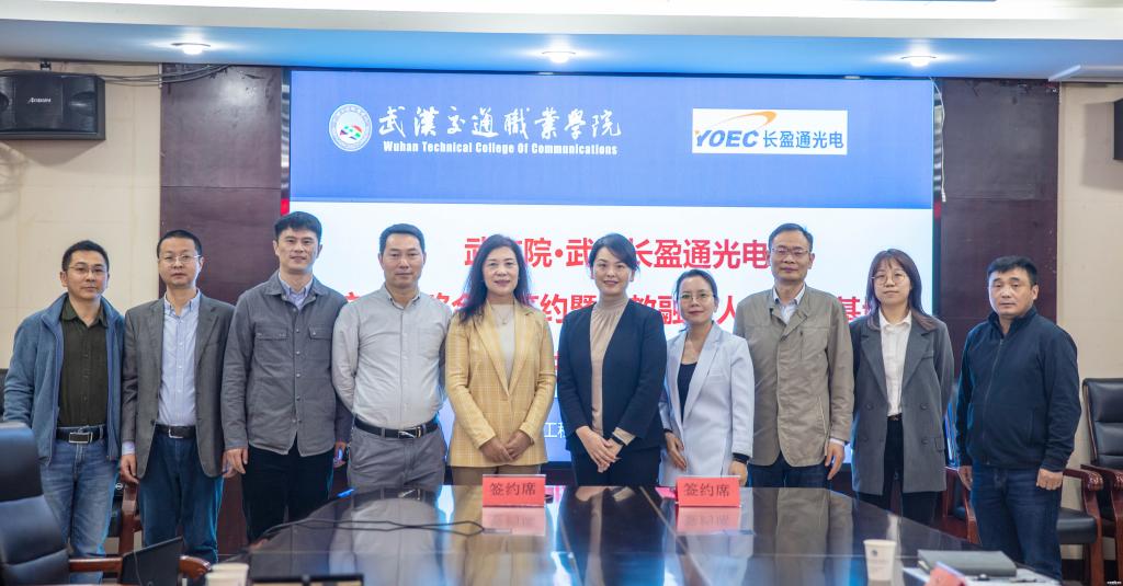 新闻网讯(通讯员 吴雨佳)为进一步巩固校企合作成果,促进产教深度融合,提高学校人才培养质量,11月4日上午,武汉交通职业学院与武汉长盈通光电技术股份有限公司举行校企战略合作签约暨产教融合人才培养基地揭牌仪式。学校副校长姬中英,合作交流处处长王炜以及电子与信息工程学院院长胡迎九,武汉长盈通总裁办总经理郭淼、光器件事业部总经理高旭等相关负责人共同出席仪式。仪式由电子与信息工程学院院长胡迎九主持。