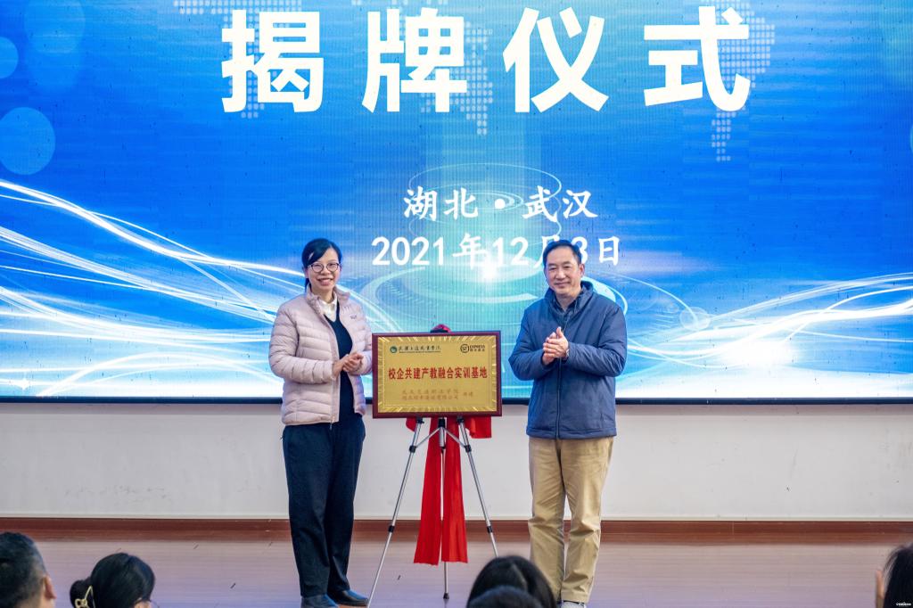 我校校长周慎、湖北顺丰速运有限公司人力资源总监张瑜共同为产教融合实训基地揭牌。