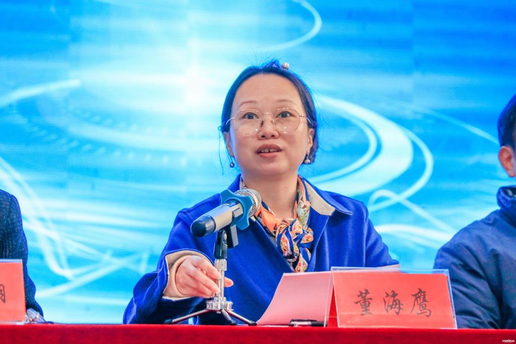 湖北物流职业教育集团副理事长、湖北省物流协会会长董海鹰讲话。董海鹰表示,日前李克强总理主持召开的国务院常务会议审议通过了“十四五”职业教育培训规划,加快培养高素质劳动者和技术技能人才,湖北物流职业教育集团将积极响应国家办好职业教育的号召,致力于高校学生职业技能的培养。董海鹰指出,湖北省九省通衢,物流行业发展的条件得天独厚,“十四五”时期,湖北省将建立17个物流枢纽,打造全国商贸物流中心,需要更多的物流行业人才储备。湖北省物流协会将与湖北物流职业教育集团共同努力,培养更多优秀的行业人才,推动湖北省物流行业蓬勃发展。