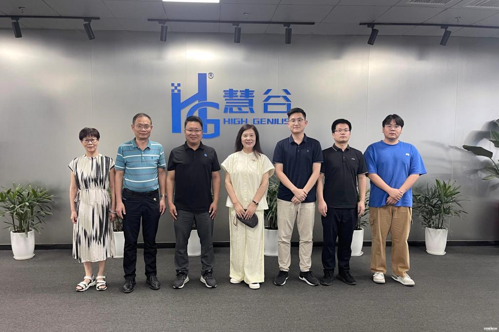 副校长姬中英一行在慧谷总经理叶智豪的陪同下,参观了慧谷公司文化展厅,详细了解了公司业务版图及相关技术设备的研发应用情况,并对公司自主研发技术在产教融合、技能竞赛上的创新应用成果表示了肯定。