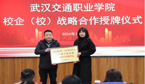 武汉交通职业学院与武汉朴雅科技有限公司的揭牌现场